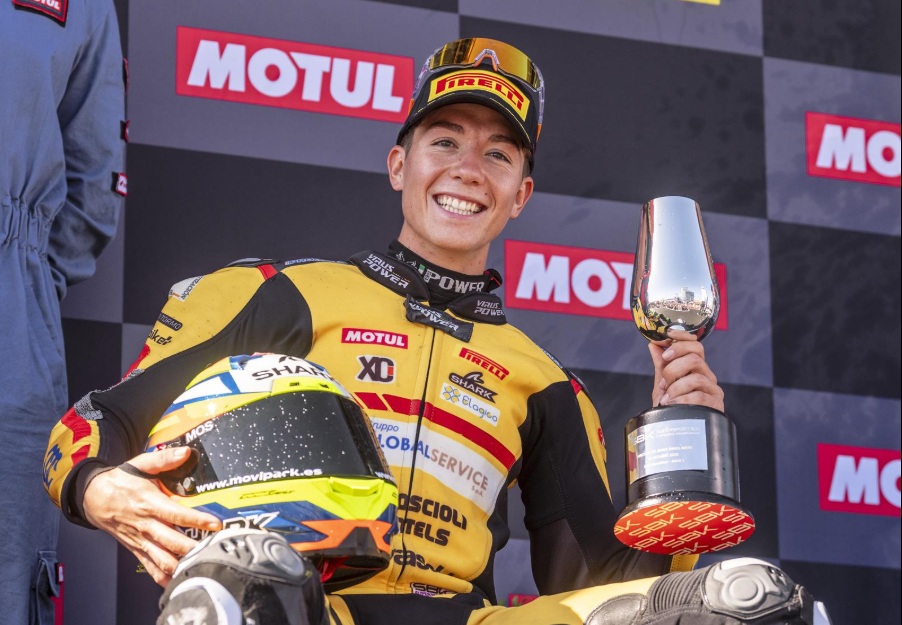 Lors de la dernière saison, la dernière avant l’arrivée de la nouvelle catégorie World Sportbike en 2026, Carter Thompson (MTM Kawasaki) et David Salvador (Team ProDina XCI Kawasaki) ont porté la lutte pour le titre jusqu’au tout dernier virage de la dernière course à Jerez. Carter a terminé deuxième au classement général et Salvador troisième, mais, dans la plupart des cas en WorldSSP300, Kawasaki s’est imposé chaque année, quel que soit le record ou la statistique du championnat dont on discute.
